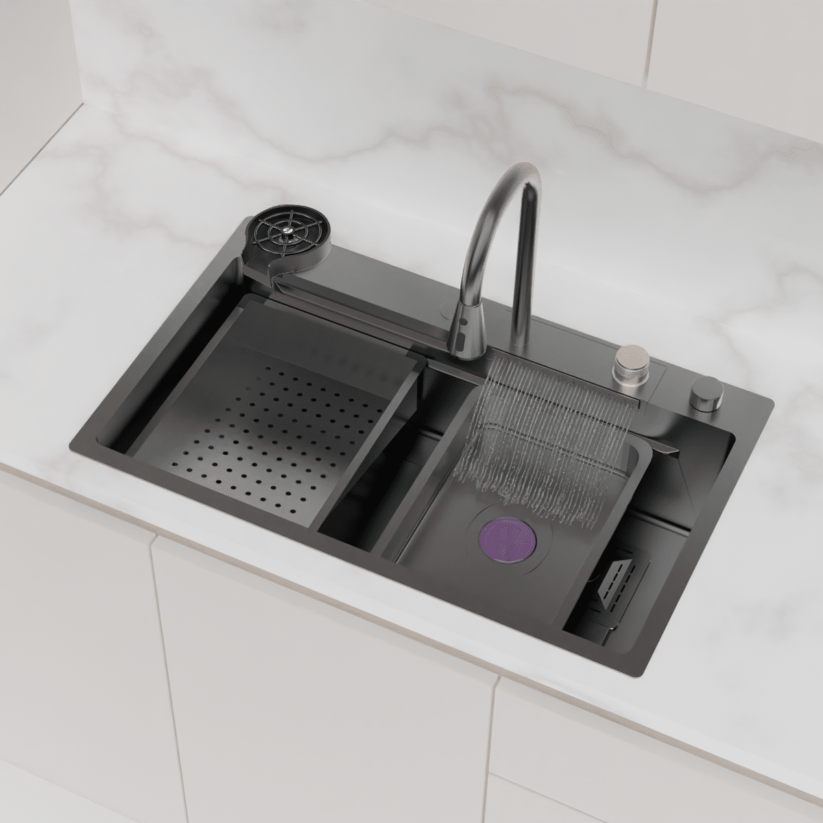 Şelale Tasarımlı Akıllı Eviye As 3541 75×45 CM Antrasit